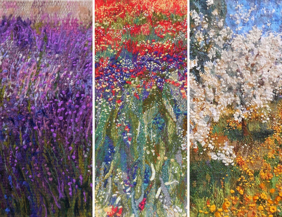 „Fascynuje mnie proces powstawania tkaniny. Od początku, gdy nie ma niczego oprócz wełnianych nitek, które później spotkają się ze sobą w mojej pracy. Cieszy mnie myśl twórcza, która sprawia, że wybiorę ten, a nie inny kolor. Ważne są dla mnie tytuły. Każdy z nich to nie tylko tożsamość samej tkaniny, ale też pomost pomiędzy mną, a odbiorcą moich prac. Tkając myślę często, o ludziach, o spotkaniach o przyjaźniach. To, co utkałam to kawałki małych spotkań, którymi zbudowałam moje opowieści”.